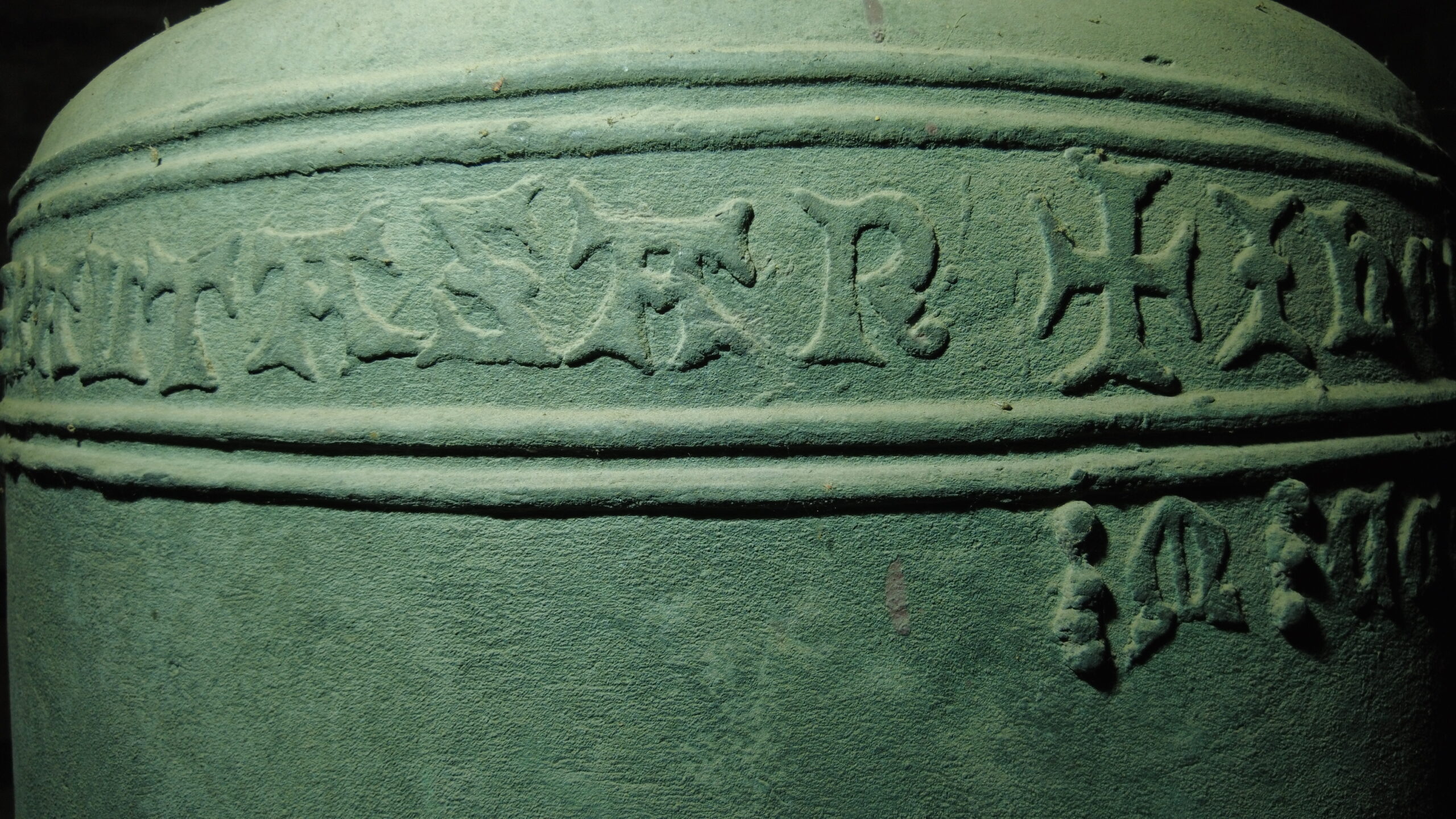 Op de klok worden, naast de namen Jezus, Maria, Johannes en de naam van de patroonheilige van de kerk: Sint Maarten, de namen van de Driekoningen vermeld. De dikke punt in het opschrift onder de tekstband zou kunnen staan voor Christus Mansionem Benedicat (CMB), de huiszegen. Dit zijn echter óók de initialen van de Driekoningen, die meehelpen de huiszegen te verspreiden, in met name West-Europa rond 6 januari. Zowel optisch als klanktechnisch zou de klok in de eerste helft van de veertiende eeuw passen.