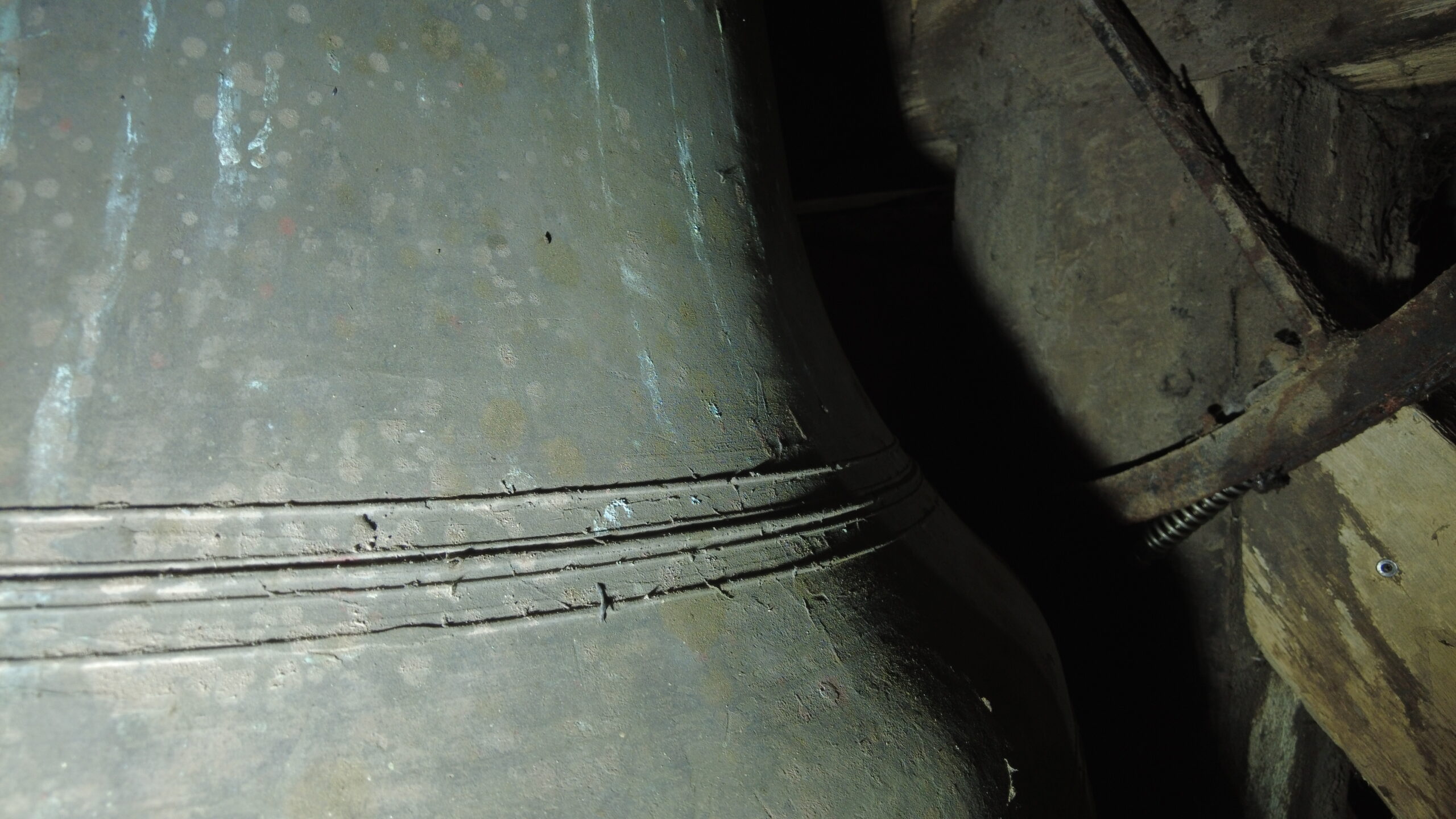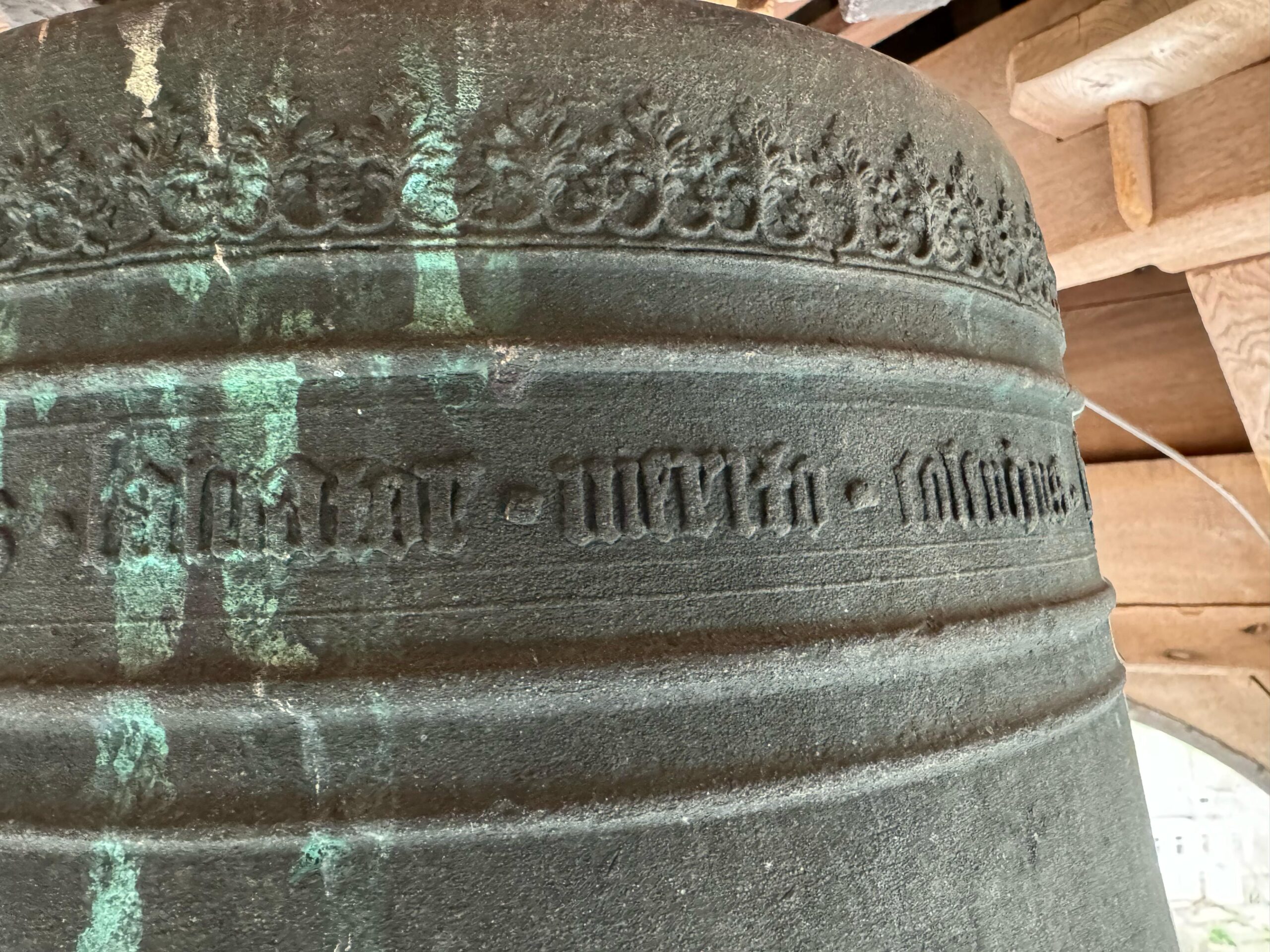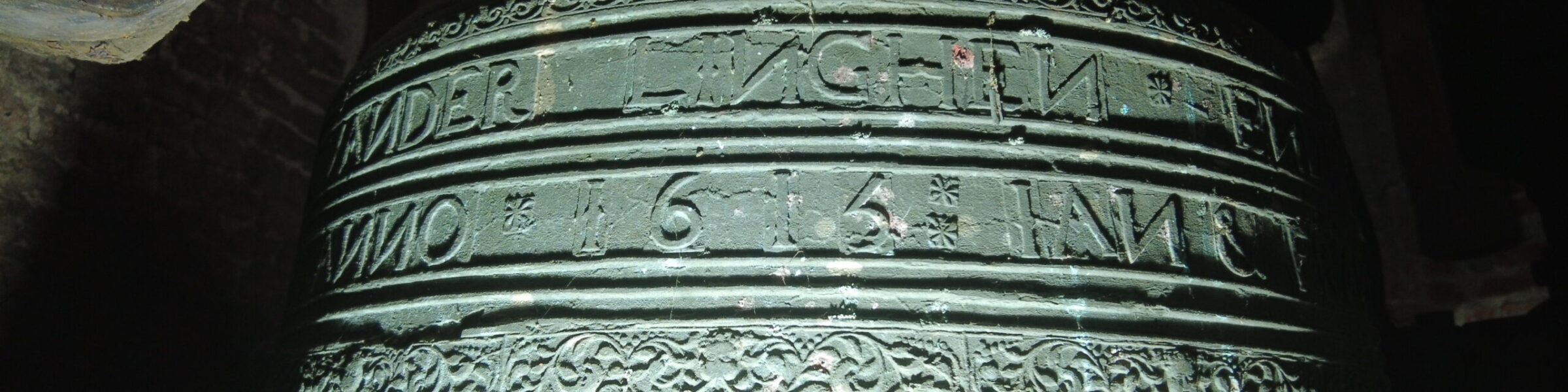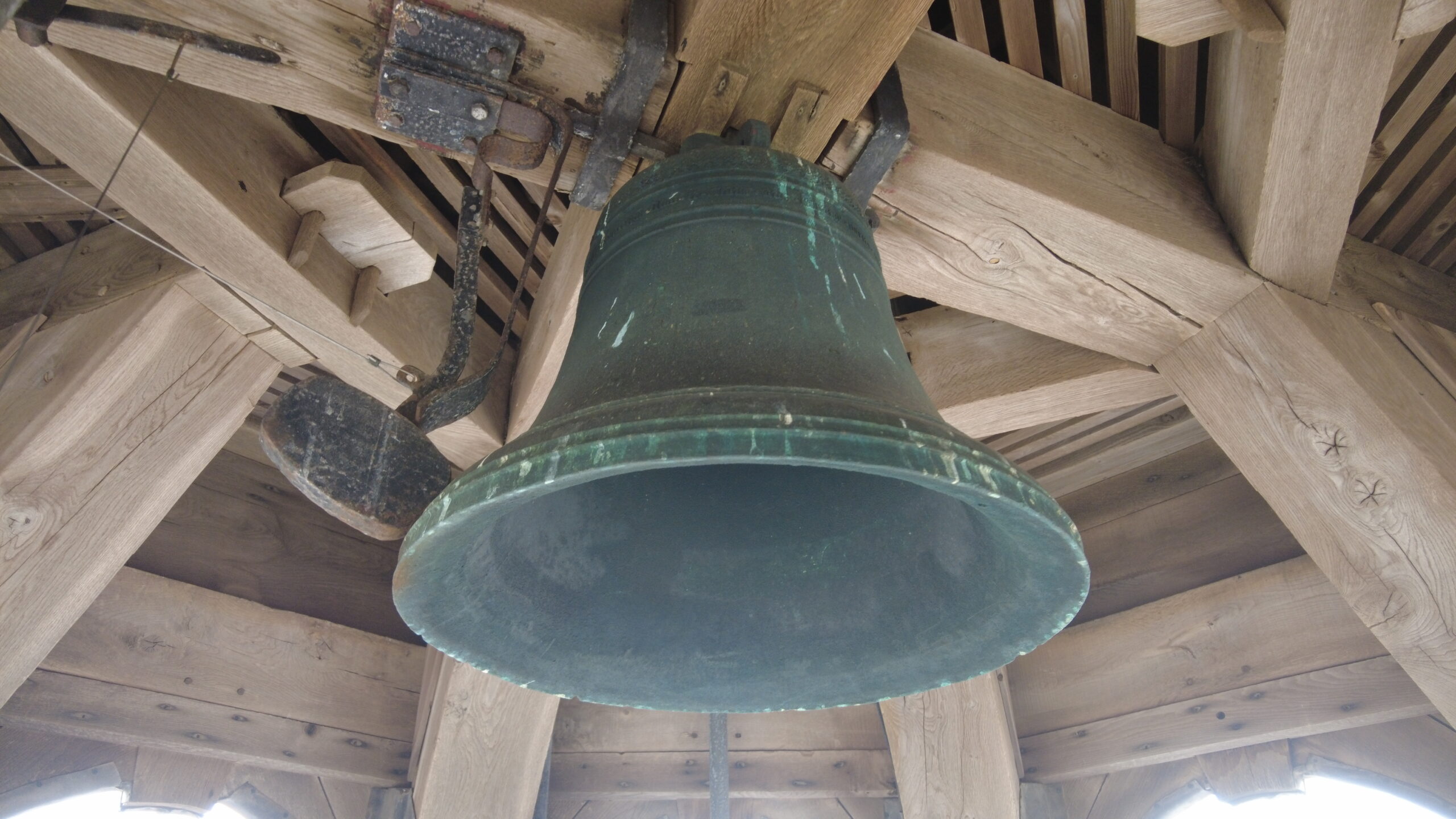 Twee grote klokken uit 1615 en 1965 dienen als luidklok. De kleine klok uit 1520 in de koepel slaat de halve uren.