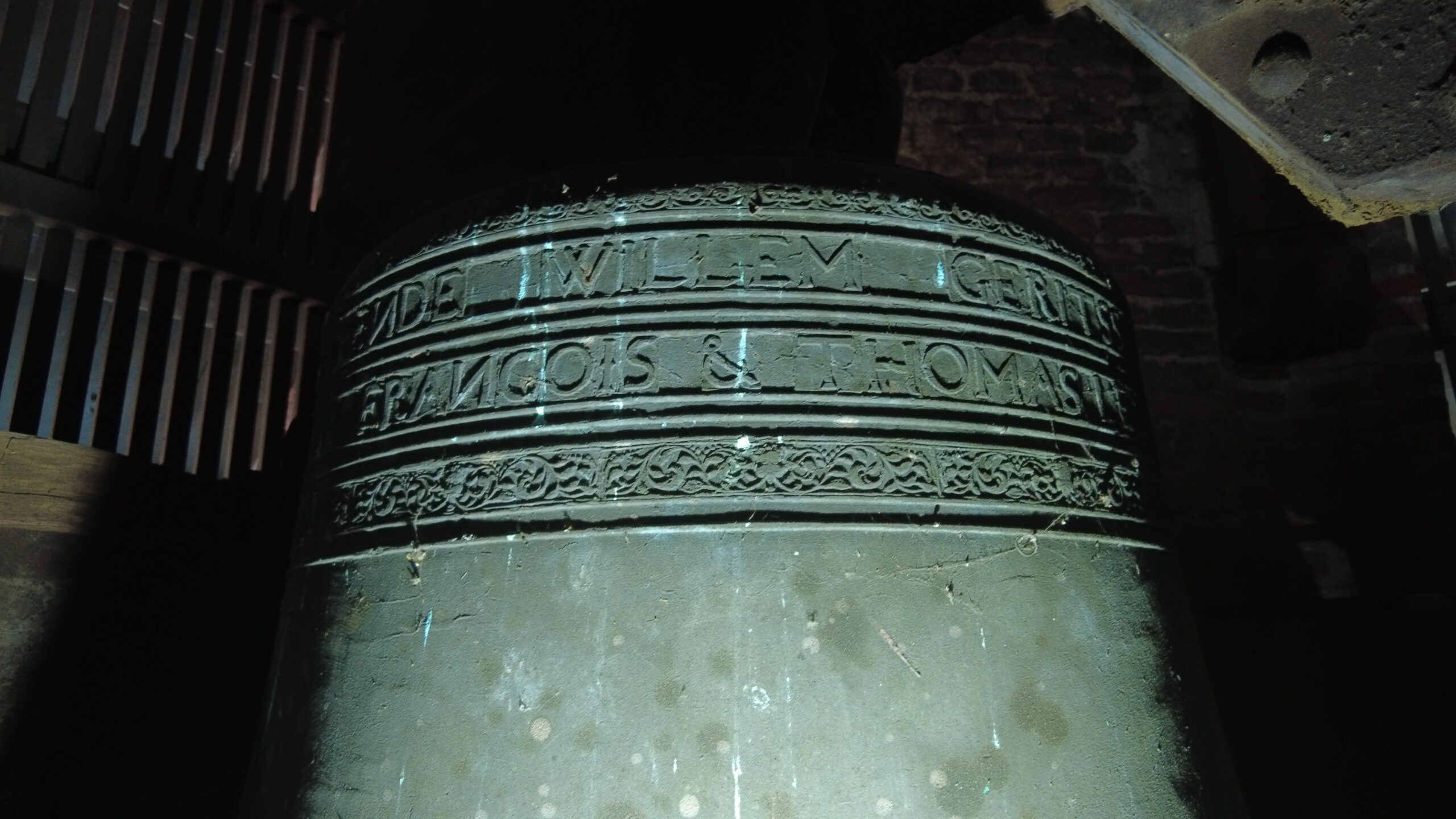 Klok 2 in de tekstbanden: Remmit Corи Vaиder Liиgheи * Ende Willem Geritsseи Wareи Kerckmees ** / Teerи Tot Bvereи Anno * 1615 ** Iaи & Fraиcois & Thomas Les Symoи Frere Иoиs ** / Oиt Faicte