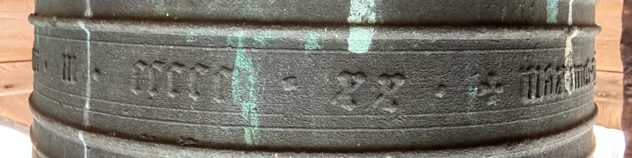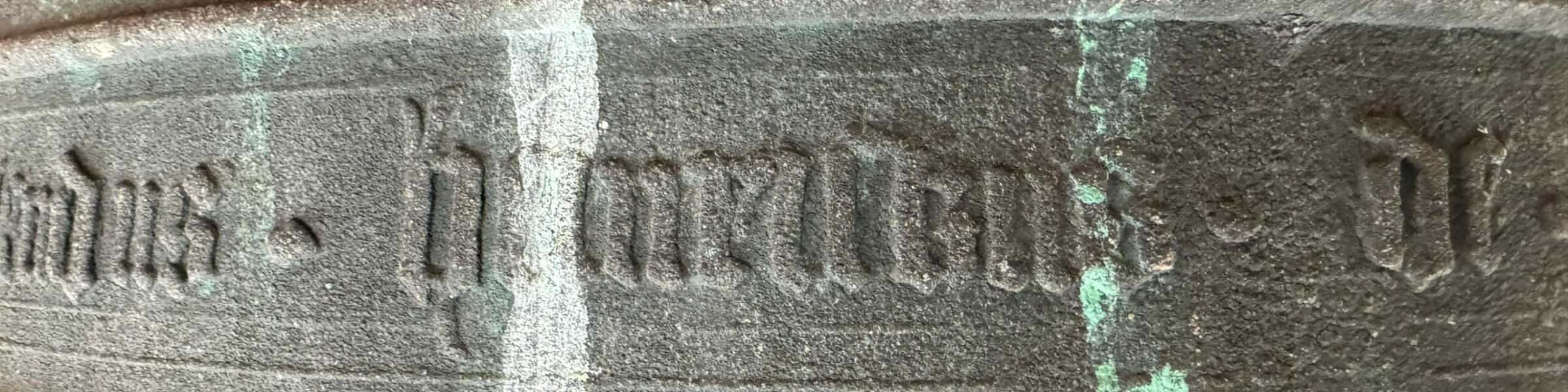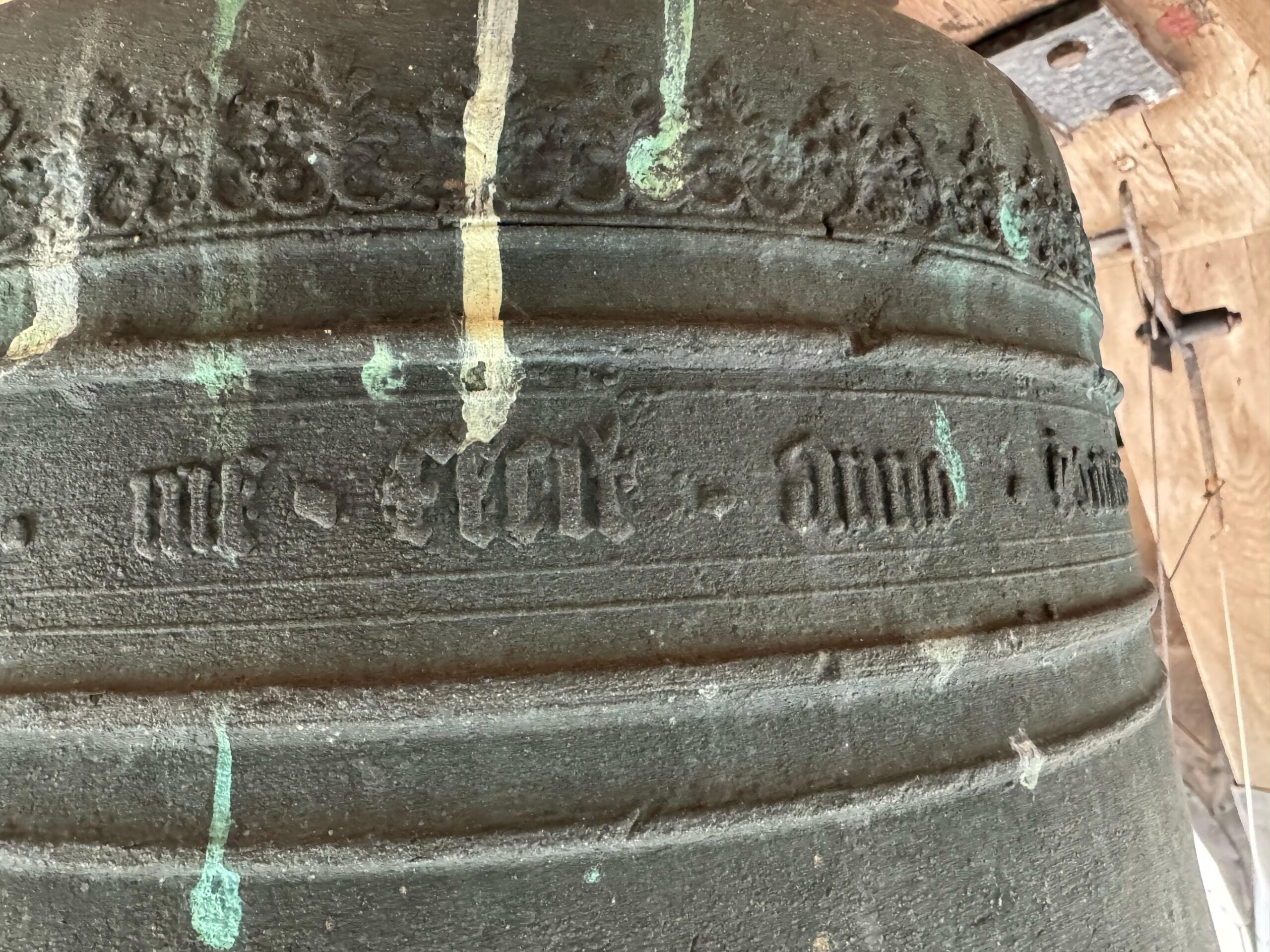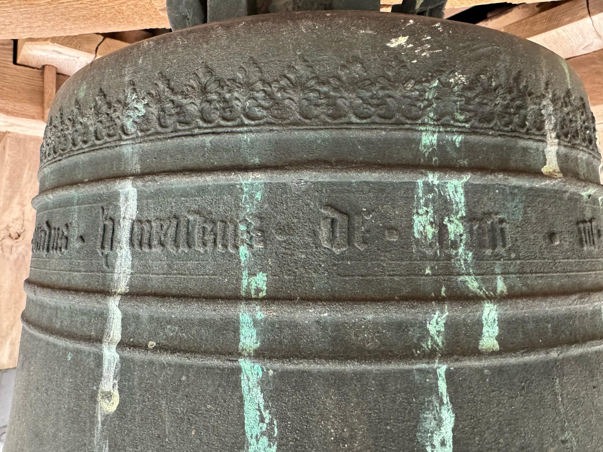 Klok 3 in de tekstband: + Martinus • Regu • Deus • Et • Creator • Atqz • Salvator • Merito • Colendus • Heinrickus • De • Borch • Me • Fecit • Anno • Domini • M • Ccccc • Xx •