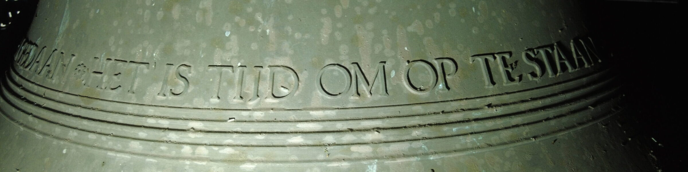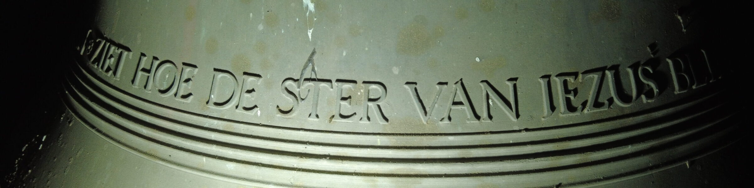 Op de faussure staat: ❁ Het Is Met Slaap En Droom Gedaan ❁ Het Is Tijd Om Op Te Staan ❁ Ziethoe De Ster Van Jezus Blinkt ❁ Hoort Hoe Een Heldere Stem Weerklinkt
